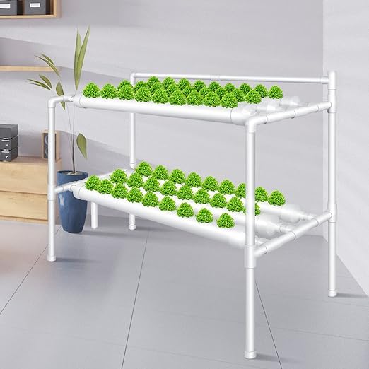MERIDIAN HYDROPONICS - NFT Growing System, Soilless Vegetable Fruit Plant Growing Tubes Kit for Home Garden Balcony 54 Plant Sites 2 Layers with Timer and Water Pump