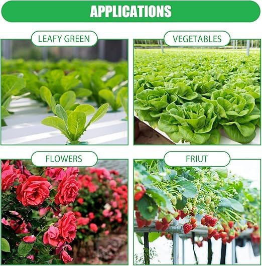 - Package Content :1 x Water Pump, 1 x Timer, 54 x Planting Basket, 54 x Planting Sponge, 1 x Hose