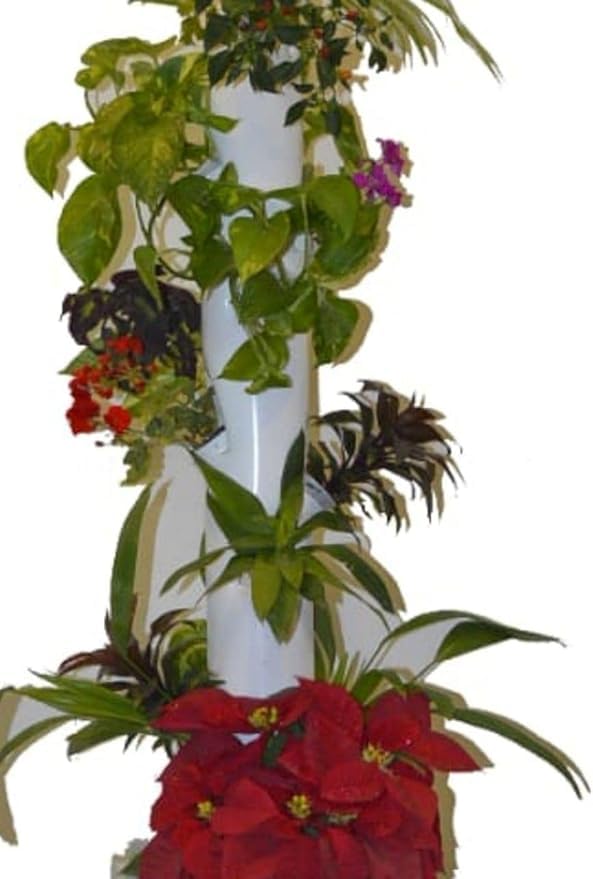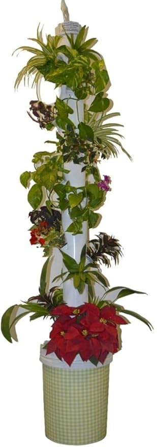 Generic - نظام الزراعة المائية العمودي (Tower Garden) من ميريديان - برج زراعة ذكي 20 شتلة، ارتفاع 1.50 متر مع خزان 20 لتر، مضخة ومؤقت تلقائي - مثالي للزراعة المنزلية والأسطح - لون أبيض.