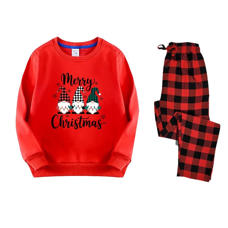 Generic - Merry Christmas Pajama Set, Red Top with Gnomes, Plaid Pants, Holiday Sleepwear Size (3XL)