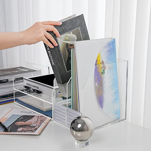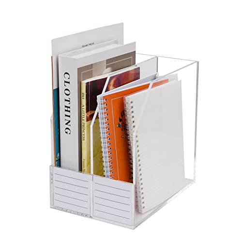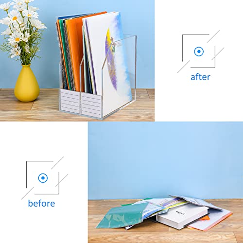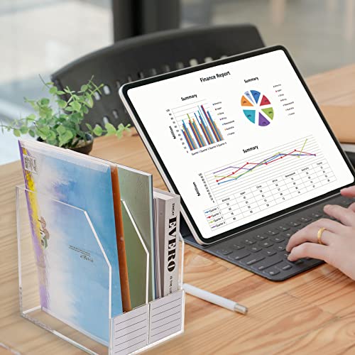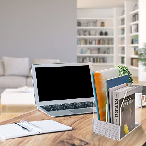 MerryNine - MerryNine Clear Acrylic Magazine Holder, Desk Organizers and Accessories,File Organizer for Desk, Magazine Rack,Independent Vertical Desktop Book Storage (2 Slots)