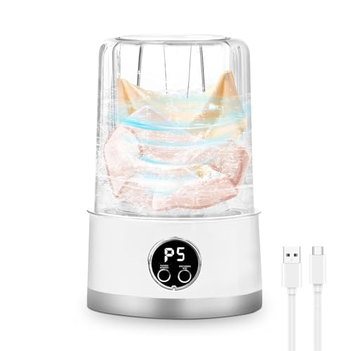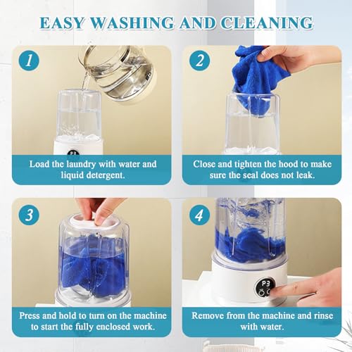 - Mini Underwear Washing Machine with Smart Cleaning Tech: Equipped with a 4D rotating turbine and waterfall spray, this cordless mini washing machine removes stubborn stains effortlessly. The sealed one-touch operation ensures no leaks, while the 390 all-copper motor delivers quiet, durable performance. Ideal for RV travel or apartments, it’s lightweight, waterproof, and requires no drainage setup—just pour water and wash!