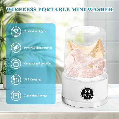 - Ultra-Portable Cordless Mini Washing Machine: Perfect for camping or tiny homes, this underwear washer combines 390W power with whisper-quiet operation. The spill-proof lid and dual drainage design make it mess-free, while the anti-scratch interior protects fabrics. Charge via USB-C in 2 hours and enjoy 15 washes—compact enough for backpacks yet tough enough for mud-stained gear!
