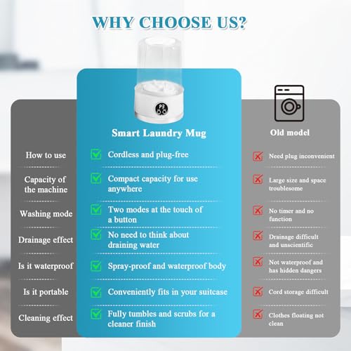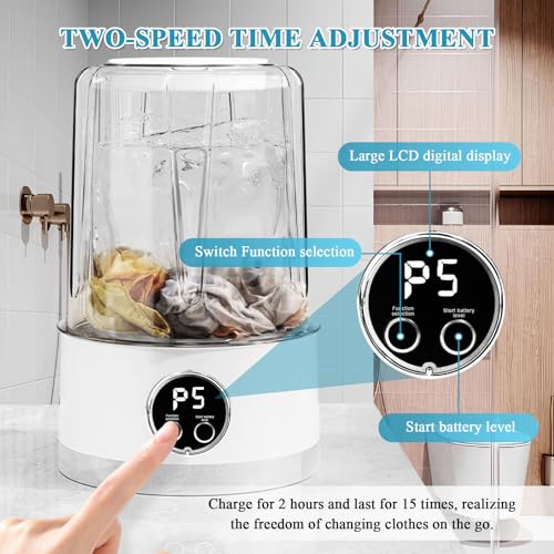 - Portable Washing Machine with 1500mAh Cordless Design: This wireless portable laundry cup offers ultimate convenience for travel or small spaces. Featuring a rechargeable 1500mAh battery, enjoy 15 washes per charge without cords. Perfect for underwear, baby clothes, or camping gear, its 1L collapsible design fits in luggage. Includes 2 time modes + 3C motor for powerful yet gentle cleaning. Say goodbye to messy sinks!