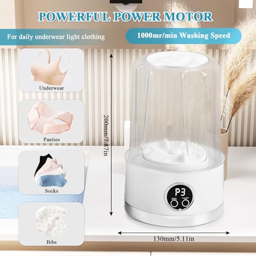 - Collapsible Underwear Washer for Travel & Daily Use: Weighing under 1kg, this mini washing machine for underwear is a space-saving marvel. The removable smart cup simplifies loading, while the all-steel ensures longevity. Use it for quick 5-minute cycles or deep-clean modes—ideal for gym clothes, socks, or swimsuits. Bonus: no noisy spin cycles, just fresh, hygienic results!