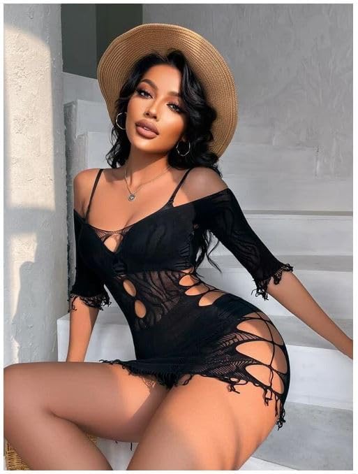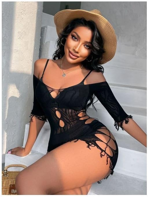 Generic - Mesh Cut Out Fringe Trim Off Shoulder Bodycon Dress Without Liner (No 6069)