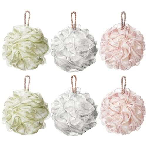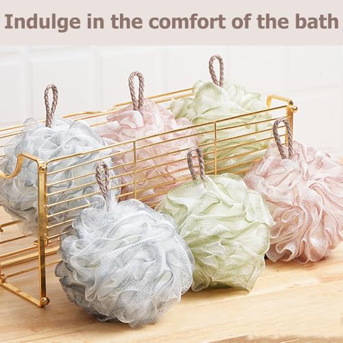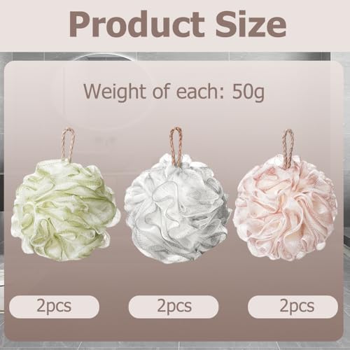 - 【Packing List】You will receive 6 PCS Mesh Pouf Bath Sponge, weight 50 g, White, Grey, Green Meet your daily needs