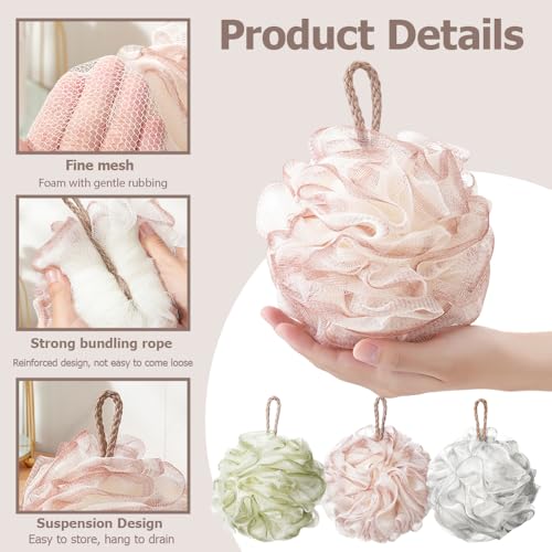 - 【Product Material】Mesh Pouf Made of PE material, Soft bath sponge featuring fine mesh, creating richer and longer lathers