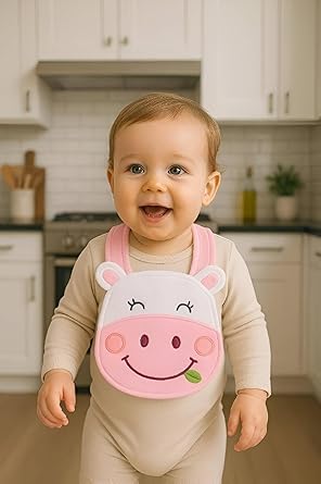Generic - مريلة أطفال لتناول الطعام دون فوضى، مصممة من قطن ناعم رائع، تصميم كرتوني لحيوانات محببة، مع زر ضغط عملي، قابلة للغسل في الغسالة، لإضفاء نعومة آمنة لبشرة الأطفال، مناسبة للأعمار من 6 إلى 24 شهرا