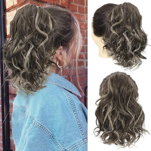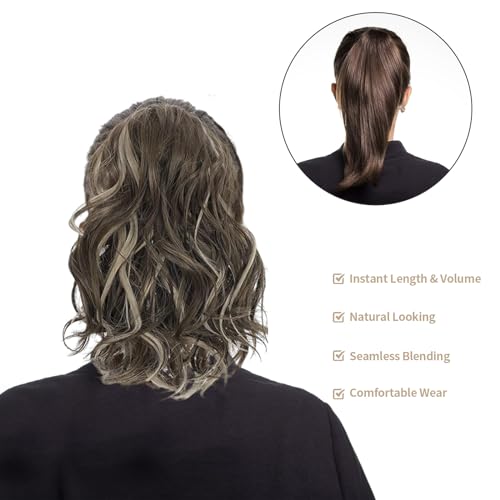 Larfraecy - وصلة شعر بتسريحة ذيل الحصان، وصلة شعر قصيرة بتسريحة ذيل الحصان، وصلات شعر مخلبية وكعكة فوضوية للنساء والبنات، شعر صناعي بمظهر طبيعي بتسريحة ذيل الحصان، شعر صناعي مموج (بني غامق مع هايلايت)