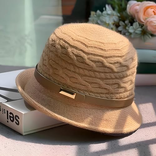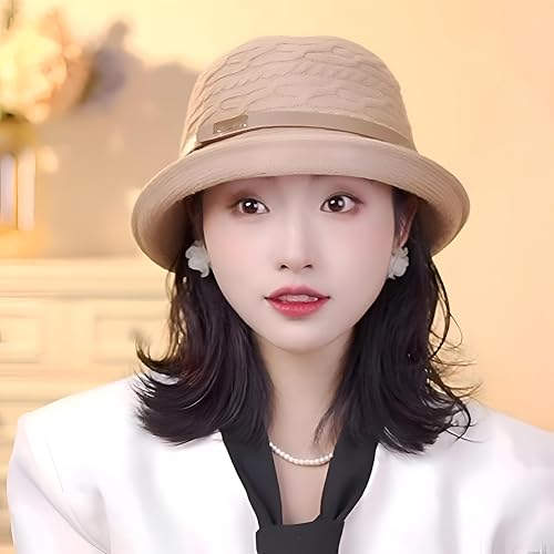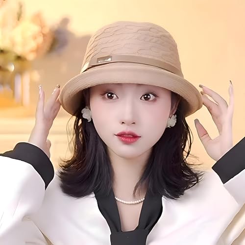 Generic - Metal Band Cloche - Women's cloche-style bucket hat with a metal accent band, textured woven fabric, foldable brim for shade, perfect for events, offered in coral.