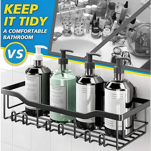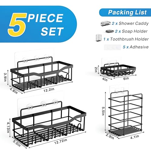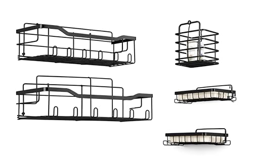 - تتضمن مجموعة منظم الدش هذه خمس قطع أساسية: حاملان استحمام عريضين وحاملي صابون وحامل فرشاة أسنان - جميعها مصممة لإضفاء النظام على حمامك أو حمامك أو حتى مطبخك بمظهر أنيق وموحد يعزز أي مساحة.