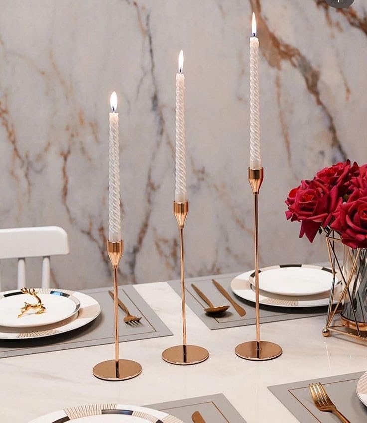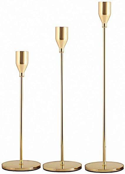 Generic - Metal Candle Holder Set, Traditional Freestanding Design, 25 cm Height, Gold Finish, Indoor Use