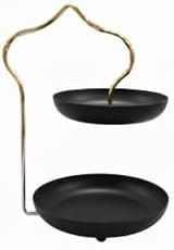 Generic - Metal Date Holder 2 Tiers, Islamic Design, Black and Gold, Premium Ramadan Dessert Serving Plate