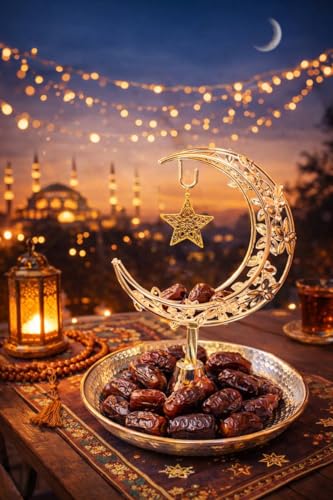 Generic - حامل تمور وحلويات معدني – تصميم هلال ونجمة أنيق لتقديم الحلويات والتمر بطريقة جذابة TN