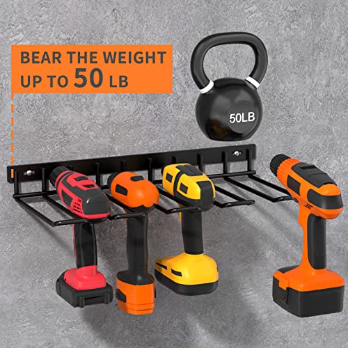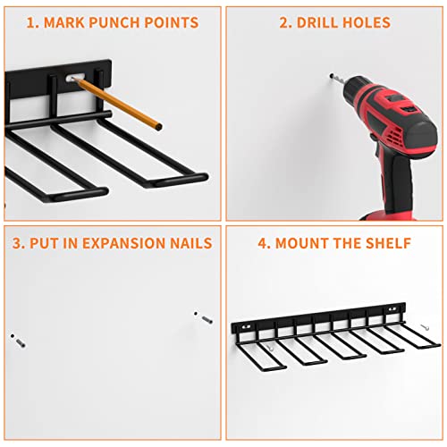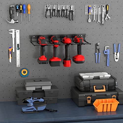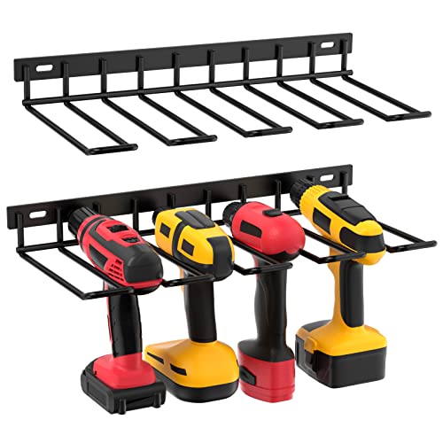 - EASY TO INSTALL & USE - In the package is a complete drill storage rack (come with 6 expansion nails and 6 screws), no need to assemble the shelf. You just need to mount the rack on the wall using screws. A single drill storage rack can hold 4 drills and other small power tools. Make your tools easy to get.