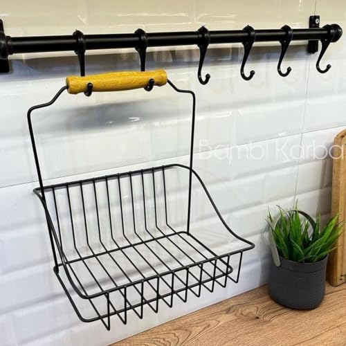 - 3 in 1 Ready Daily Kit : 22" Metal Hanging Barrel + Large Dessert Basket 29x10x19.5 cm + 6 S-Hooks -- Full Pack to Minimize Mess and Maximize Wall Use