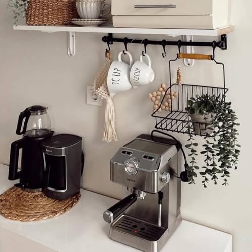 - 5 خطافات قوية على شكل حرف S: لسهولة تغيير وضع الملاعق والمصافي والأكواب والأواني.