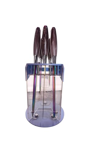 Generic - طقم سكاكين معدنية مع حامل، 6 قطع - فضي