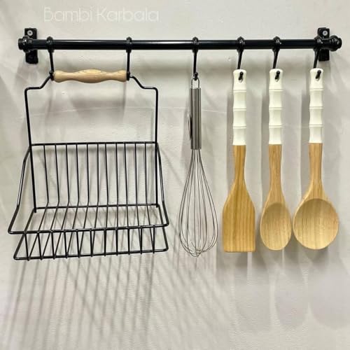 Generic - Metal Pipe Multi Use (Contains 5 Hooks, Sauce Holder and Bottle Holder) Long and Durable Black 60cm Generic