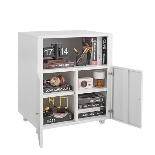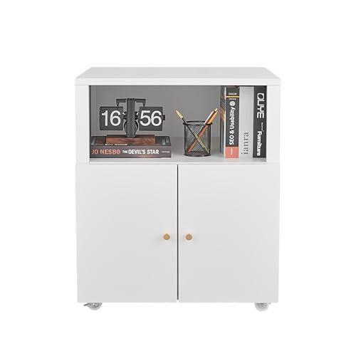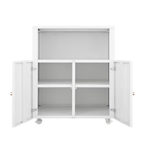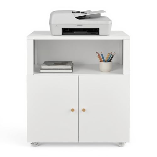 Hipicute - خزانة طابعة معدنية مع مساحة تخزين للملفات، حامل طابعة ثلاثية الابعاد على عجلات مع بابين، خزانة ملفات تحت المكتب للمكتب المنزلي وغرفة المعيشة والمساحات الصغيرة، ابيض مع رف