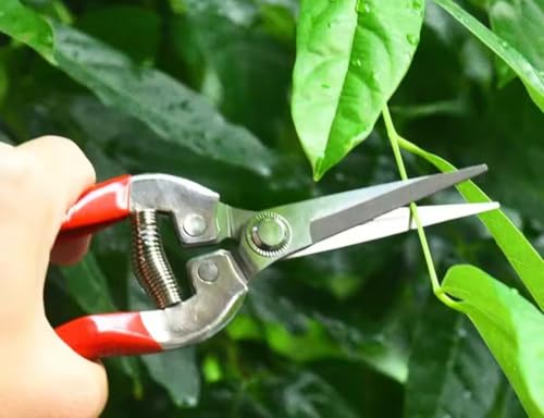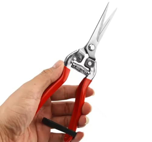 Generic - مقص تقليم معدني، مقابض حمراء، شفرات فولاذية حادة، أداة قص العنب