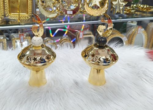 Generic - Metal Ramadan Incense Burner – Gold Color – Crescent and Cannon Lid – Height 23cm and Diameter 10cm – Elegant Ramadan Decor AB