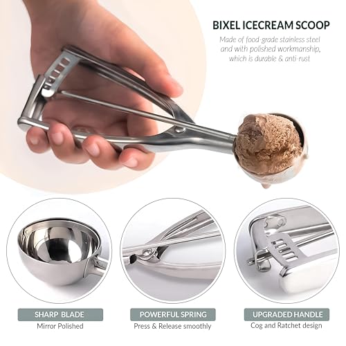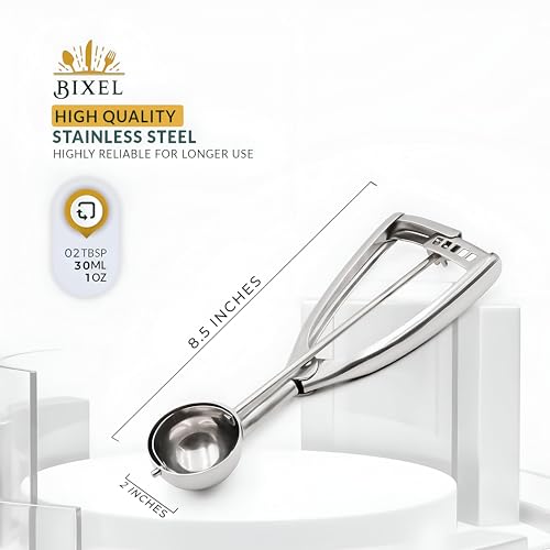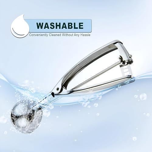 - إحدى الميزات البارزة لمغرفة الآيس كريم هذه هي أنها مزودة بمقبض سهل الضغط. يسمح هذا التصميم المبتكر بتشغيل سهل دون مجهود، مما يتيح لك إخراج الآيس كريم أو الخلطات الأخرى بضغطة لطيفة فقط. هذا يعني أنه يمكنك الاستمتاع بحلوياتك المفضلة دون عناء المعاناة مع المغرفة التقليدية، مما يجعلها أداة موفرة للوقت في مطبخك.