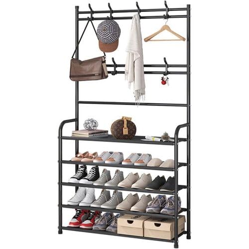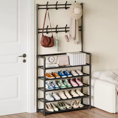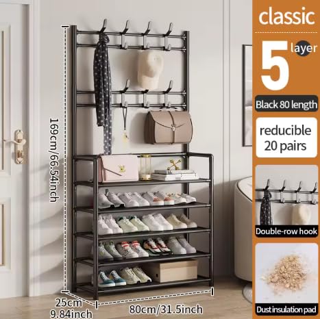 Generic - رف أحذية معدني متعدد الطبقات، أسود، 80 سم × 25 سم × 106 سم، مع خطافات مزدوجة، يتسع لـ 20 زوج