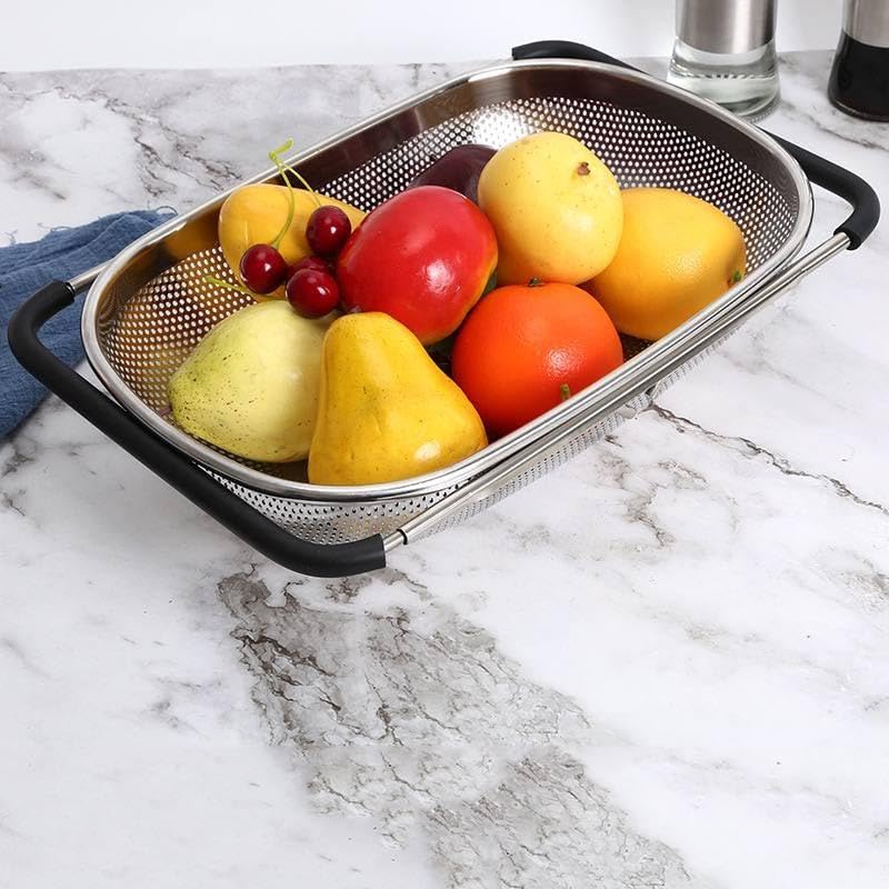 Generic - Metal Strainer - Rectangular Adjustable Kitchen Basket with Silicone Handles for Washing Fruits and Vegetables, Fits Most Sinks, Secure Anti‑Slip Grip for Everyday Use, Silver and Black Finish
