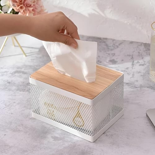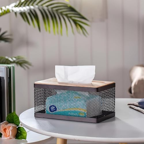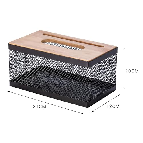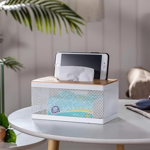 Generic - Metal Tissue Box with Bamboo Lid and Phone Holder, Modern and Classic Creative Tissue Box for Hotels, Cafes, Home, Office, Holds About 550 Tissues 21 * 12 * 10