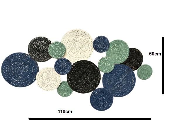 Generic - لوحة ديكور حائط معدنية – تصميم دوائر هندسية باللون الأبيض والاسود و الازرق والاخضر– ديكور بوهيمي عصري للمنازل والمكاتب – حجم 60×110 سم – تصميم ثلاثي الأبعاد