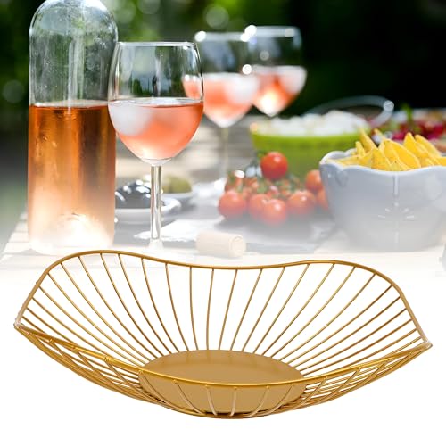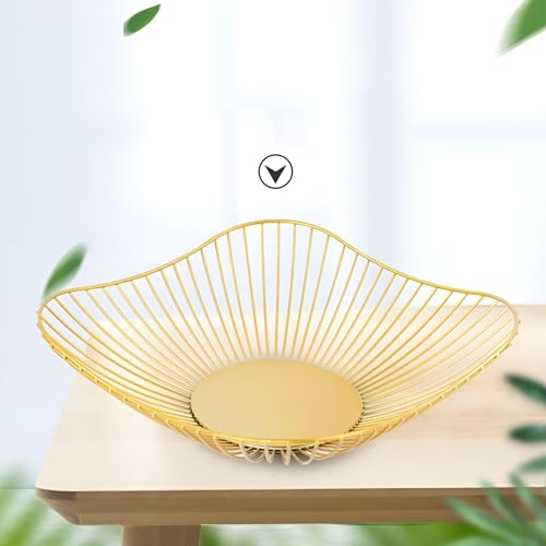 Generic - وعاء فاكهة بسلك معدني - لمسة نهائية ذهبية انيقة بتصميم زهرة اللوتس لديكور المطبخ الانيق وعرض الفاكهة الطازجة في المنازل الحديثة ومناطق تناول الطعام (موديل 1)