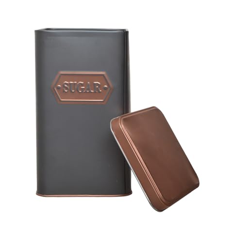 Generic - حاوية تخزين سكر معدنية مع غطاء، 200 مل، أسود وبني