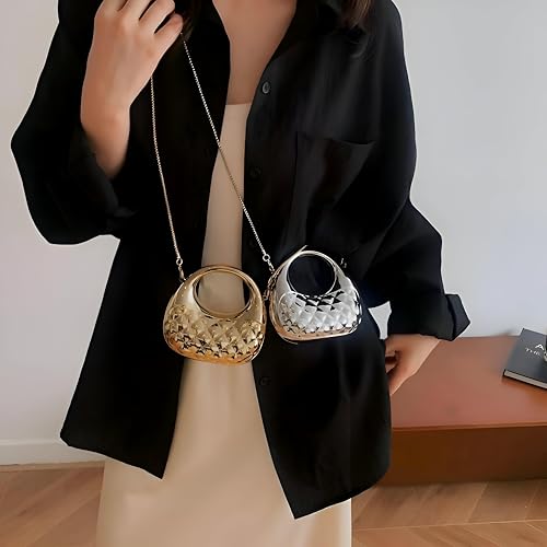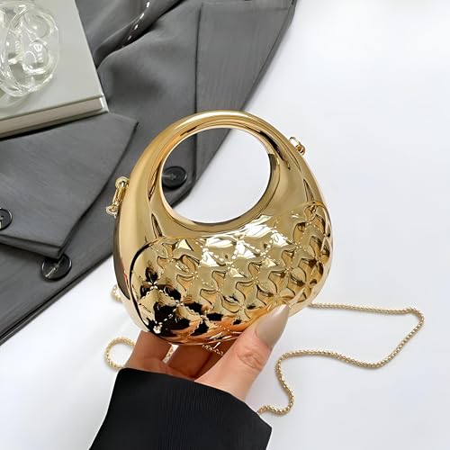 Generic - شنطة يد صغيرة على شكل فيونكة معدنية مع حزام سلسلة، لون ازرق، محفظة مسائية - تصميم انيق للمناسبات الليلية والمناسبات الرسمية