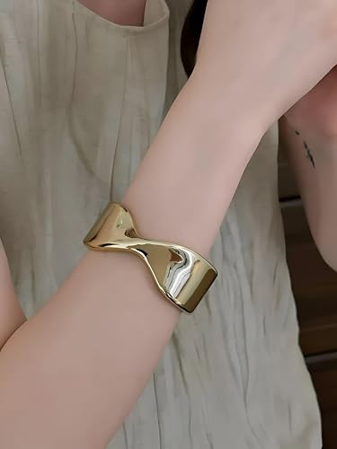 Generic - Metallic Finish Bangle - A bold geometric cuff bracelet with a wide design and elegant silver and gold tones for a chic accessory.