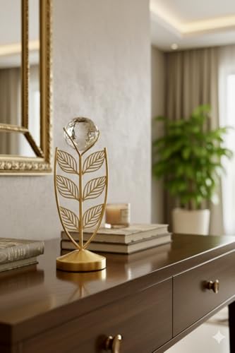 - LUXURIOUS & STYLISH DESIGN: Gold plated metal decorative piece with non-peel-off gloss finish, with crystal clear 100g ball adds a sophisticated touch to any place
