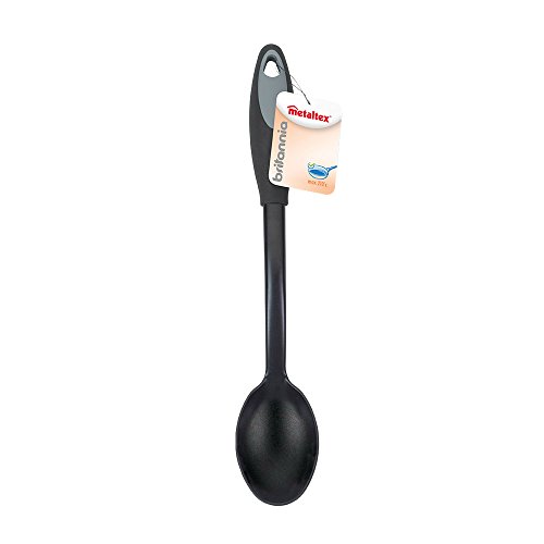 Metaltex - ميتالتكس ملعقة بريتانيا صلبة بتصميم عصري مع عمود نايلون ومطاط حراري، حشوة سوداء في المقبض، متعددة الالوان