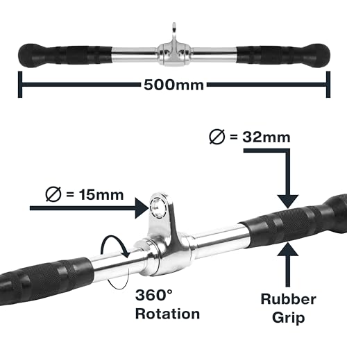 - [Universal Equipment Fit]: The bar's 15mm diameter connector ensures compatibility with all standard cable pulley machines, making it a versatile addition to any gym setup.