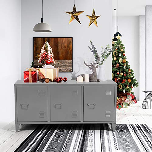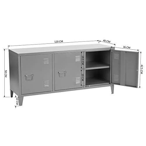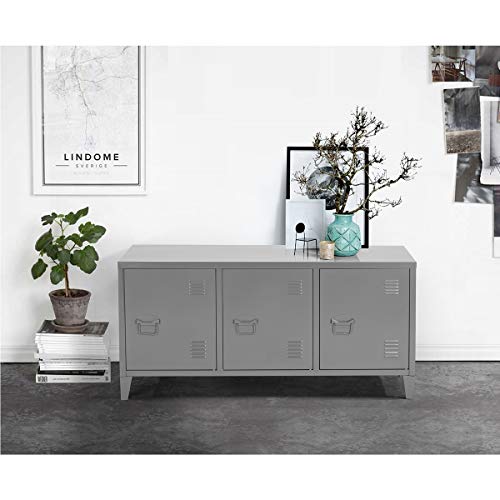 MEUBLE COSY - دولاب تخزين جانبي من ميوبل كوزي، حامل تلفزيون معدني عصري مع 3 أبواب لغرفة المعيشة والمدخل، رمادي، 40×120×58 سم، رمادي داكن ماتابوري