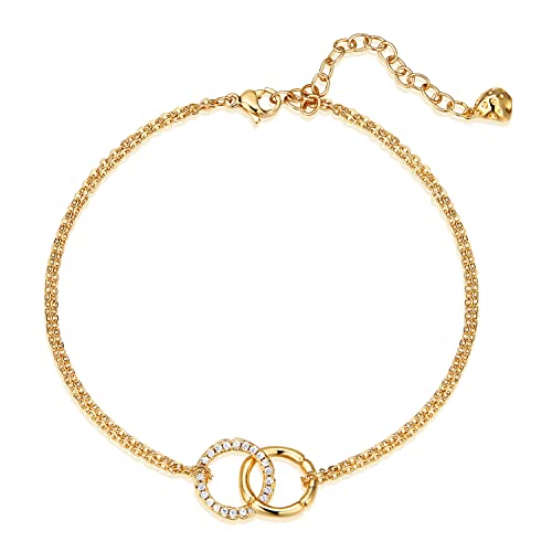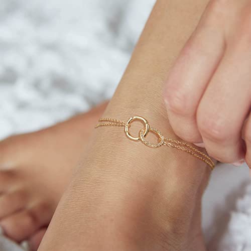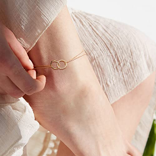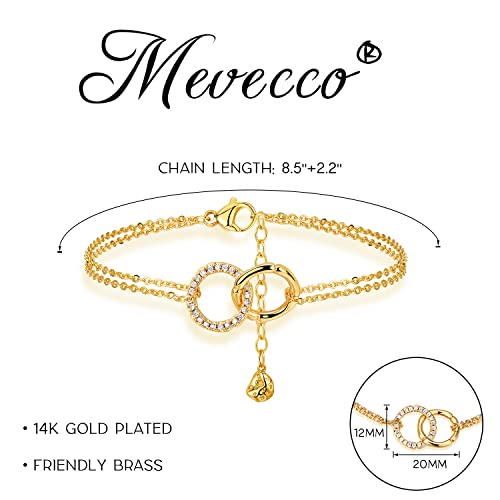 Mevecco - MEVECCO Women's Dainty Gold Anklet, 14K Gold Plated Cubic Zircon Boho Beach Jewelry, Delicate Cute Adjustable Chain Ankle, 8.5 inches, Brass, no gemstone
