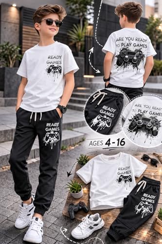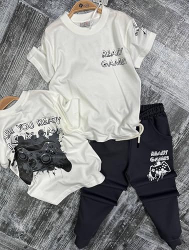 Meza - MEZA طقم أطفال أولادي قطعتين، تيشيرت بطباعة مع بنطلون، ميلتون ليكرا مبرد، معالج ضد الوبر والانكماش، طباعة سبليميشن