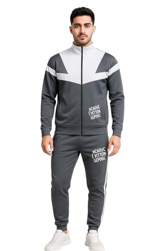 Meza - MEZA Men's Tracksuit Set Sports Jacket and Pants Set Fashion Side Stripe Tech-Flies Padded Gym Sports Suit Black and White/Beige/Green