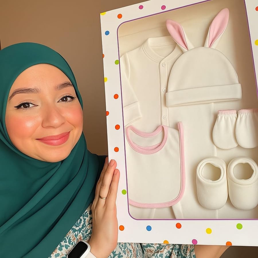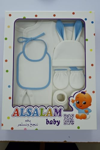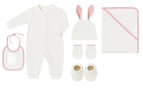 Meza - Meza Newborn 6 Piece Baby Plush Clothes Set, Bodysuit, Coverlet, Bib, Hat, Gloves, Clok, Pink, Blue, White, Unisex