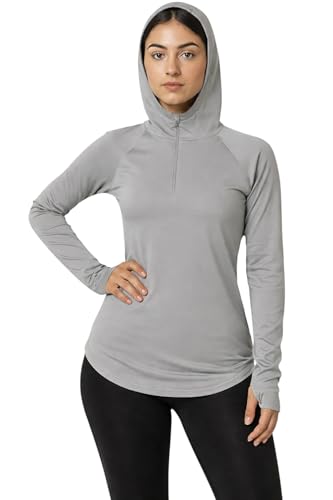 Meza - ميزا بلوزة رياضية نسائية بغطاء رأس، خامة دايفينج ليكرا، نصف سوستة، مناسبة للرياضة - تيشرت هودى للبنات والنساء