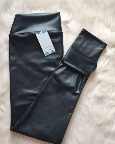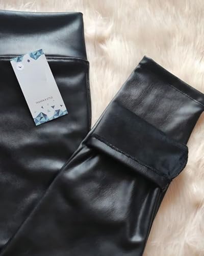 Meza - MEZA ليجنز جلد نسائي فاخر، مبطن هايدي ليكرا، خصر عالي، لون أسود - بنطلون من الجلد الناعم والمبطن من الداخل للبنات والنساء من ميزا