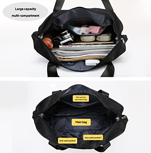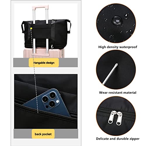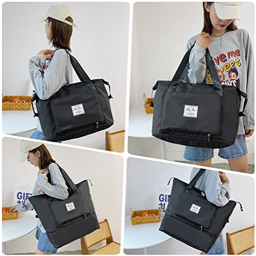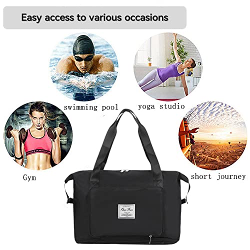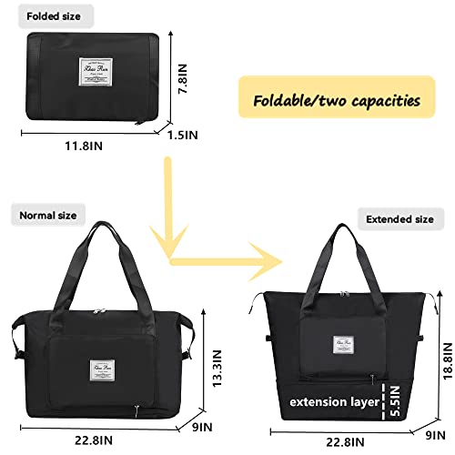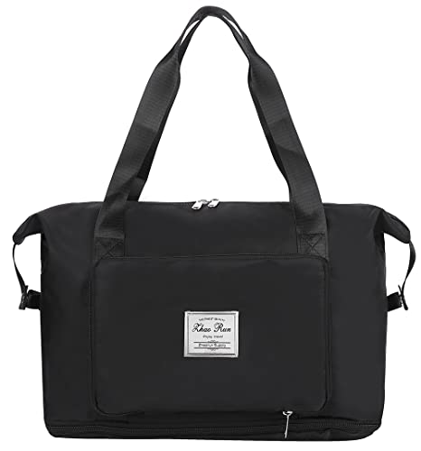 mezhsa - Travel Duffel Bag Foldable and expandable bag Lightweigh Shoulder Weekender Overnight Bag for Women Sports Tote Gym Bag, Black, Multipurpose Travel Bag