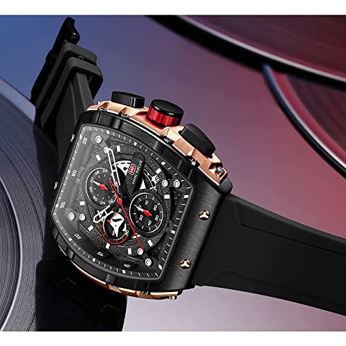MF MINI FOCUS - MF MINI FOCUS Mens Square Luxury Tonneau Hollow Dial Large Dial Waterproof Watch Sport Quartz Business Chronograph Mens Watches with Black Silicone Strap