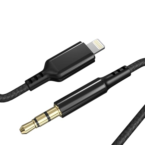 TOMPOL - [MFi Certified Product] AUX Cable, Lightning to 3.5mm Conversion Cable, HIFI Sound Quality, Audio Cable, Lightning to 3.5mm, Audio Conversion Cable, Nylon Braid, Durable, Black