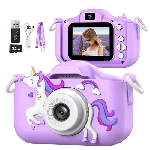 Mgaolo - MgaoLo Kids Camera Toys For 3-12 Year Old Kids, Hd Digital Video Camera With Silicone Protective Cover, Christmas Birthday Gifts With 32GB SD Card (Purple Unicorn